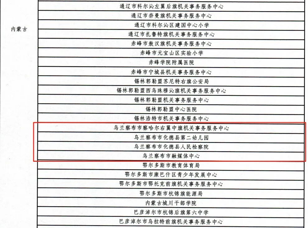 其中,乌兰察布市化德县人民检察院上榜2023-2024年节约型公共机构示范单位名单。