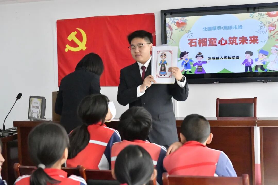 随后,凉城县检察院法治副校长和“北疆蒙芽?晨曦未检”团队成员们接过普法接力棒,从校园欺凌的定义、表现形式入手,结合普法动画短剧《森林法庭》,用孩子们听得懂的“童言童语”解读了校园欺凌行为对受害者身体和心理造成的伤害,以及对整个校园氛围和学生成长环境的不良影响。“如果看到同学因为民族习俗被嘲笑、被欺负该怎么做?”“法律怎么保护我们小朋友呀?”……结合校园生活中可能遇到的场景,法治副校长把《未成年人保护法》《民族区域自治法》里的关键知识点讲得通俗又好记,让法治的小种子也悄悄住进了孩子们心里。