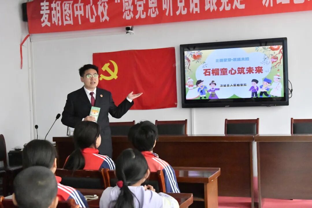 金秋九月,丹桂飘香,民族团结的旋律在校园里轻轻奏响。为做好第42个全区民族团结进步活动月工作,筑牢未成年人法治防线,生动讲好新时代内蒙古民族团结进步故事,9月25日,凉城县检察院携手县民族事务委员会,带着对孩子们的关爱走进麦胡图镇中心校,开启了一场“民族团结+法治守护”的奇妙之旅,让一颗颗“小石榴籽”在活动中感受温暖、收获成长。