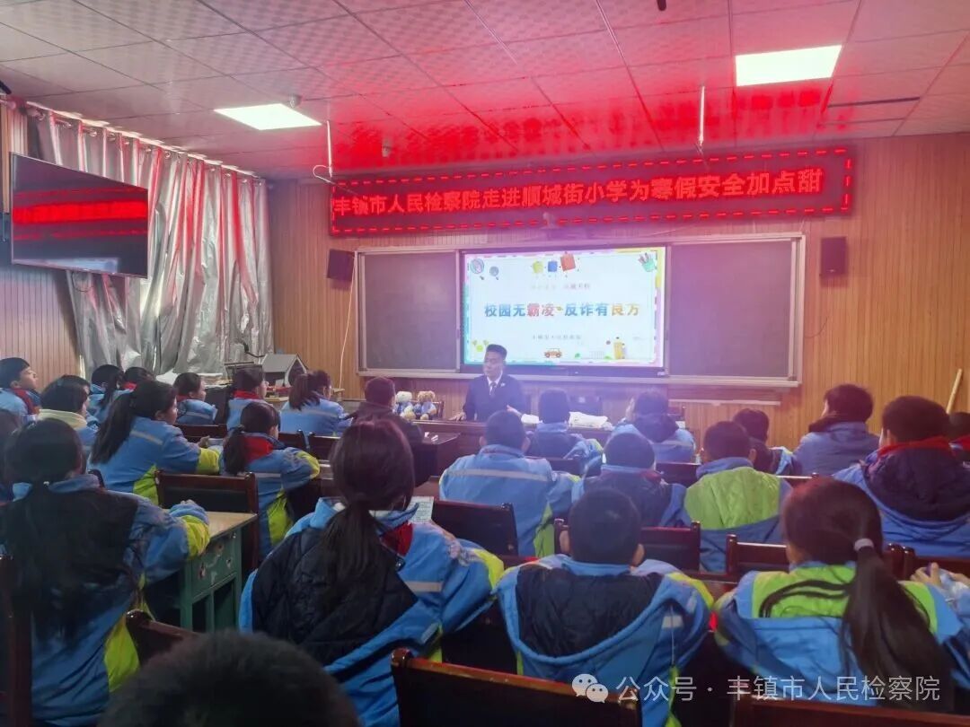寒假的脚步越来越近,如何让法治安全住进孩子心里?丰镇市检察院晨曦未检工作团队带着满满诚意走进顺城街小学,用一场趣味十足的“法治盛宴”,为孩子们送上暖心又实用的寒假安全守护。课堂上,检察人员抛开枯燥说教,循着小学生的认知节奏,把《未成年人保护法》里的知识点变成“身边事”。从“法是保护我们的小卫士”讲起,结合校园欺凌、网络安全等真实案例,用通俗的语言拆解“不能碰的红线”,更手把手教孩子们“遇到危险怎么躲”,让法治意识悄悄扎根在幼小心灵。为了让普法更对孩子“胃口”,检察人员创新互动形式:通过“法治知识快问快答”调动全场热情,孩子们踊跃举手、积极抢答,在紧张有趣的问答中巩固安全知识点。同时,特意准备了印有“检爱同行”的定制帆布袋,搭配印有晨曦未检的专用笔记本,让孩子们在收纳与记录中时刻铭记法治要点,让原本严肃的法律知识变得生动又好记。活动尾声,孩子们捧着这份满载关怀的礼物,脸上洋溢着笑容,也让法治的温暖与祝福,伴着他们开启安心的假期时光。下一步,丰镇市检察院将以此次活动为起点,持续深化家校社协同联动机制,把法治问答、案例剖析等受好评的形式纳入“假期法治实践清单”,以多方合力筑牢青少年安全防线,让每一颗童心都能在法治阳光下安心成长、快乐绽放。丰镇市检察院检察人员于1月7日走进丰镇市职业中等专业学校,为全体师生带来了一场以“寒假安全、校园反欺凌与青少年法治素养提升”为主题的专题法治课,为同学们的健康成长保驾护航。寒假是放松身心的美好时光,但安全这根弦绝不能松。宣讲人员结合青少年的身心特点和生活实际,从交通安全、消防安全、网络安全、人身安全四个方面,为同学们进行了细致讲解,更将法律知识融入其中,让大家明白每一项安全注意事项背后的法治逻辑。讲解中,强调“一停、二看、三通过”的出行准则,更明确指出违反交通法规可能承担的法律责任。骑行电动自行车需年满16周岁、不乘坐“黑车”等规定,既是安全要求,也是法定义务。围绕《中华人民共和国消防法》,提醒同学们不玩火、不私拉乱接电线,同时重点讲解了火灾报警流程和自救方法。特别强调,故意纵火是严重违法行为,已满14周岁者将承担刑事责任。依据《中华人民共和国未成年人保护法》,教导同学们增强自我保护意识,不独自前往偏僻场所,不接受陌生人馈赠。遭遇不法侵害时,要在保证自身安全的前提下及时呼救、报警。要对校园欺凌说“不”。校园是成长的摇篮,和谐校园需要全体师生共同守护。我院检察人员从法律视角出发,为同学们清晰界定了校园欺凌的四种类型——身体欺凌、语言欺凌、社交欺凌、网络欺凌,让大家认清校园欺凌的真实面貌。深入剖析了校园欺凌的严重危害。针对如何应对校园欺凌,检察人员给出了明确指引:受害者要勇敢说“不”,不与欺凌者硬拼,第一时间告诉老师、家长或报警,用法律武器保护自己;欺凌者及时收手,主动道歉承担责任,避免走上违法犯罪道路;旁观者不做冷漠看客,在保证自身安全的前提下劝阻欺凌行为,或及时向老师报告,履行反欺凌义务。一堂生动的法治课,为同学们的寒假生活和校园成长筑牢了安全防线。通过法治课,希望同学们将把安全意识和法治观念融入日常行为,度过一个平安、快乐、有意义的寒假。