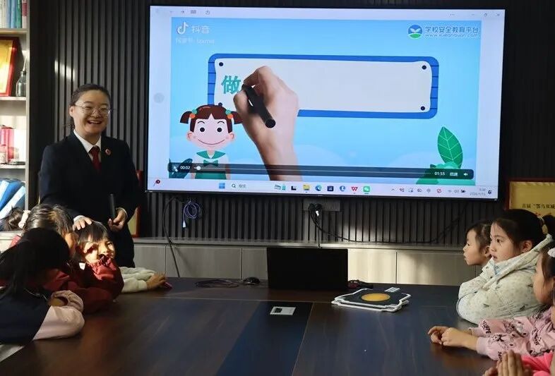 活动中,化德县检察院邀请团委等单位共同参与,组织50余名幼儿及家长走进化德县检察院开展专场普法活动。未检检察官根据3-6周岁幼儿的认知特点,精心设计了交通安全和身体隐私保护两个核心课程。交通安全课上,首先播放交通安全动画短片,短片中以生动形象模拟十字路口过马路、幼儿园门口上下学等场景,生动演示“红灯停、绿灯行”“走斑马线要左右看等规则”,孩子们看得十分专注。随后,检察官教唱“红灯停绿灯行”儿歌,郎朗上口的歌词让孩子们很快就跟着哼唱起来。最后,搭配“模拟过马路”情景游戏,孩子们手持红黄绿“信号灯”,轮流扮演“小行人”和“小司机”,在画有斑马线的“安全通道”上实践所学所识,让安全知识在互动中深入人心。身体隐私保护课上,以“我的身体我做主”为主题,播放《做身体的小主人》动画短片,教唱《防性侵》儿歌,结合动画演示讲解“背心、内裤遮盖的部位是隐私部位,不能让人随便碰”,引导幼儿准确识别隐私部位、学会拒绝不当接触,并通过“安全小卫士闯关”游戏,让孩子们在情景判断中学会大声说“不”并向老师、家长求助。普法课后,晨曦未检工作室人员邀请幼儿及家长前往青少年法治教育基地参观,进一步增强了幼儿及家长的法治观念。
