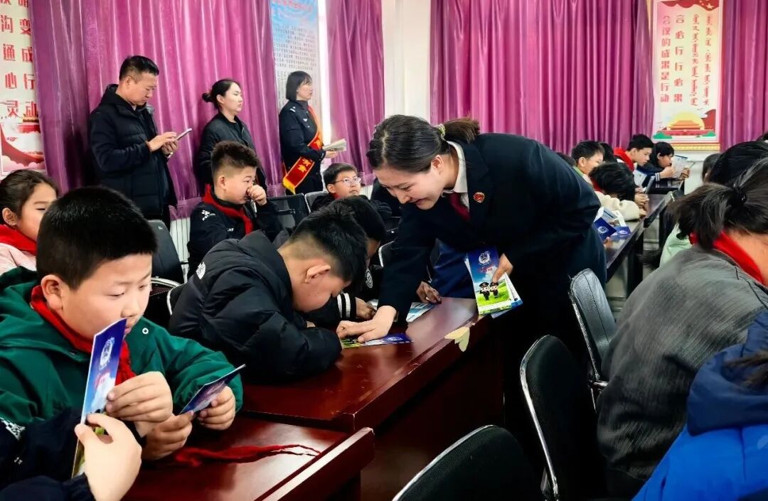 察右后旗检察院未检检察官以网络安全为主题,为孩子们送上了一堂生动实用的法治课。现场重点讲解《未成年人网络保护条例》及今年新施行的《可能影响未成年人身心健康的网络信息分类办法》等法律条例,用贴近孩子的语言解读网络保护新规,让孩子们听得懂、记得住法律知识。