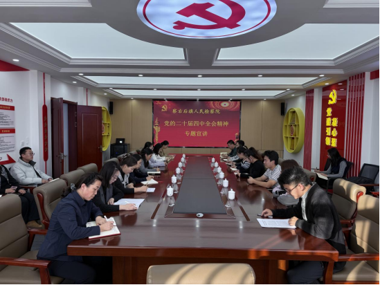 会上,谢金炎同志围绕党的二十届四中全会核心要义、精神实质和实践要求作专题宣讲,结合当前经济社会发展形势与检察工作实际,深入解读党的二十届四中全会提出的重大部署与任务要求,重点阐释了党的二十届四中全会关于平安中国建设、全面依法治国及强化检察监督、加强公益诉讼等重点任务的深刻内涵。宣讲紧密结合最高人民检察院检察长应勇“深学细悟党的二十届四中全会精神 凝心聚力推进中国式现代化”的讲话要求,引导全体党员检察人员深刻领悟“两个确立”的决定性意义,准确把握检察工作在服务高质量发展、构建新发展格局、促进共同富裕、维护安全稳定中的职责定位。