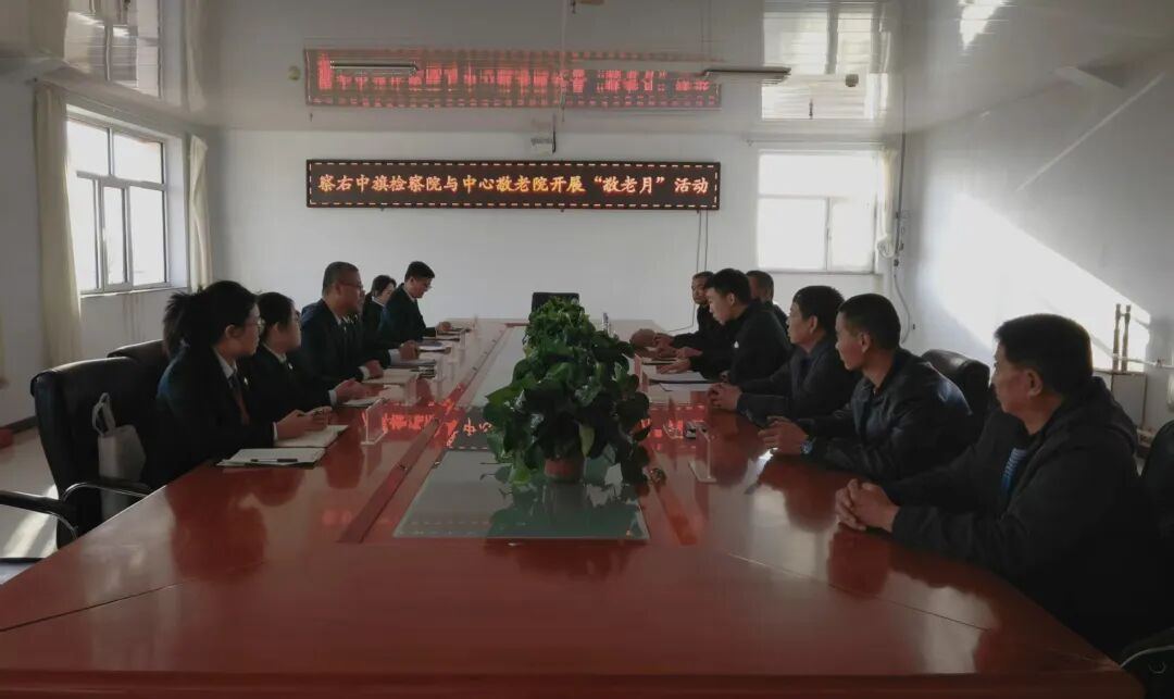 察右中旗检察院党支部联合第二检察部检察人员走进察右中旗中心敬老院,开展“弘扬孝亲敬老美德,共建老年友好社会”的主题党日慰问活动,通过普法宣传、捐赠便民设施等方式将法治关怀送到老人们身边。