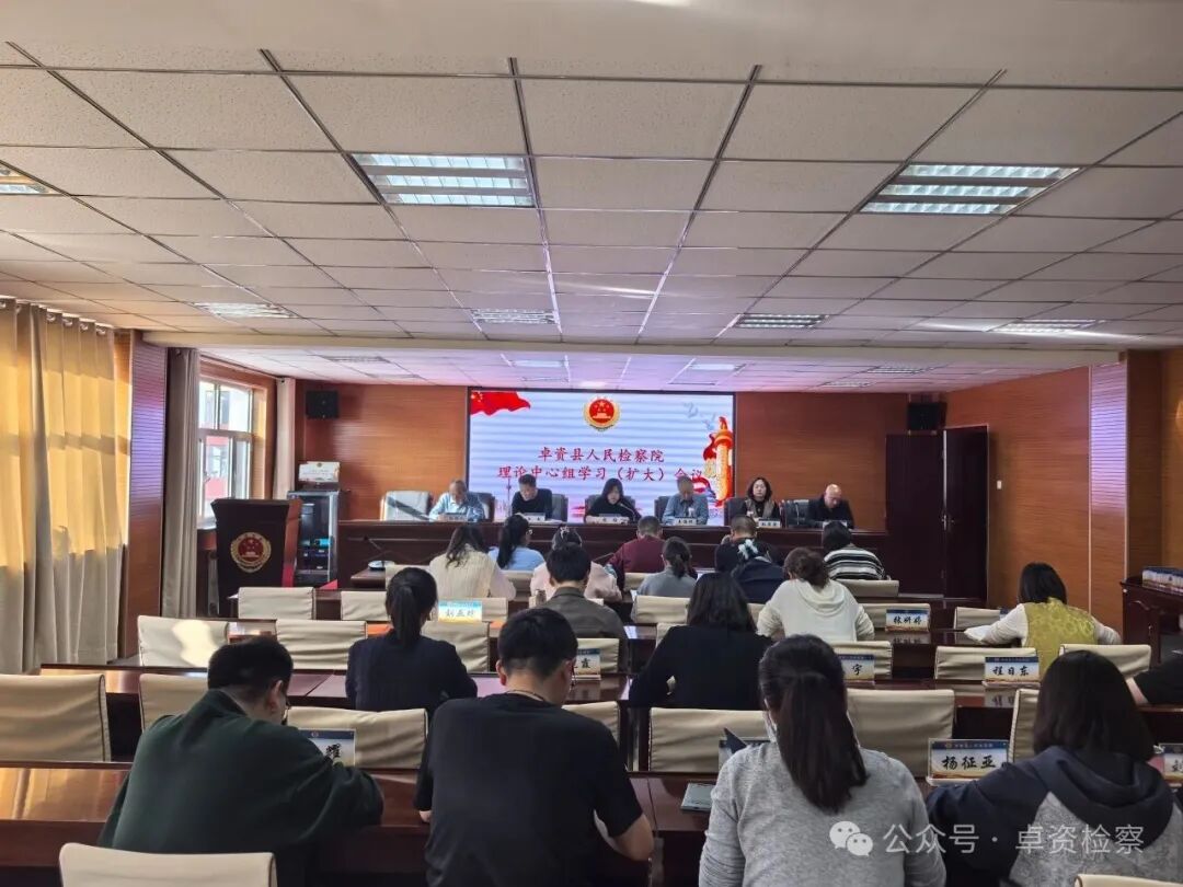 卓资县检察院召开理论中心组(扩大)会议,传达学习党的二十届四中全会精神,学习贯彻自治区人民政府、自治区党委常委会精神和最高检、区院有关会议精神。全体检察人员参加会议,院党组成员张银久主持会议,党组书记、检察长图雅讲话。
