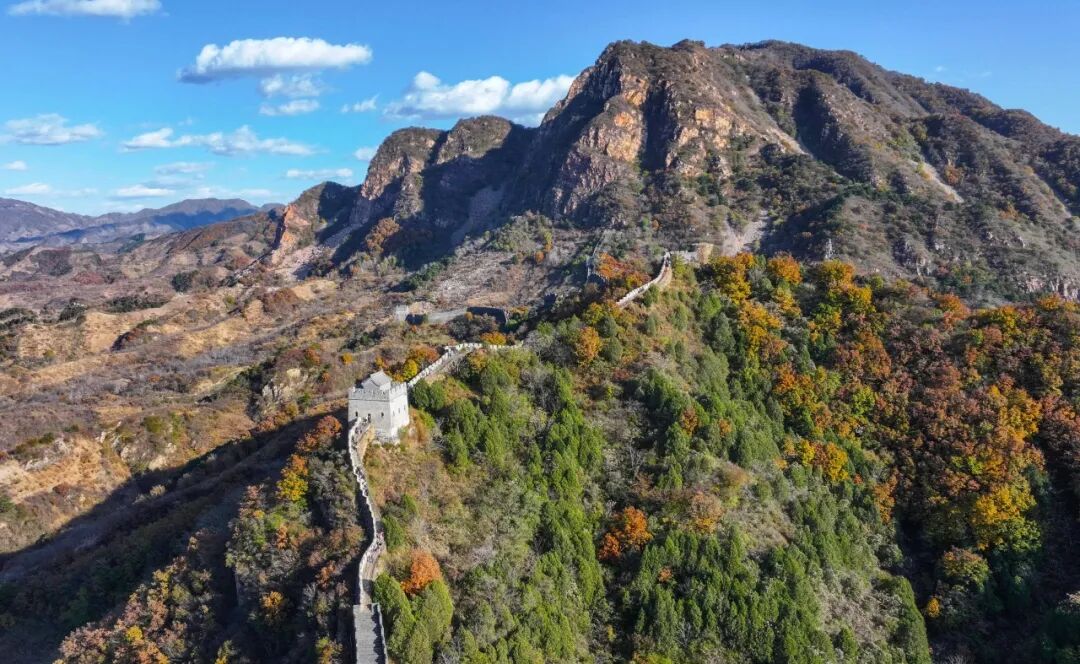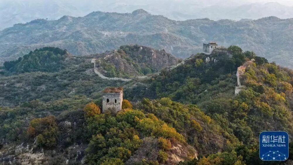 ▲11月1日拍摄的黄崖关长城秋景(无人机照片)。 新华社记者 陈晔华 摄