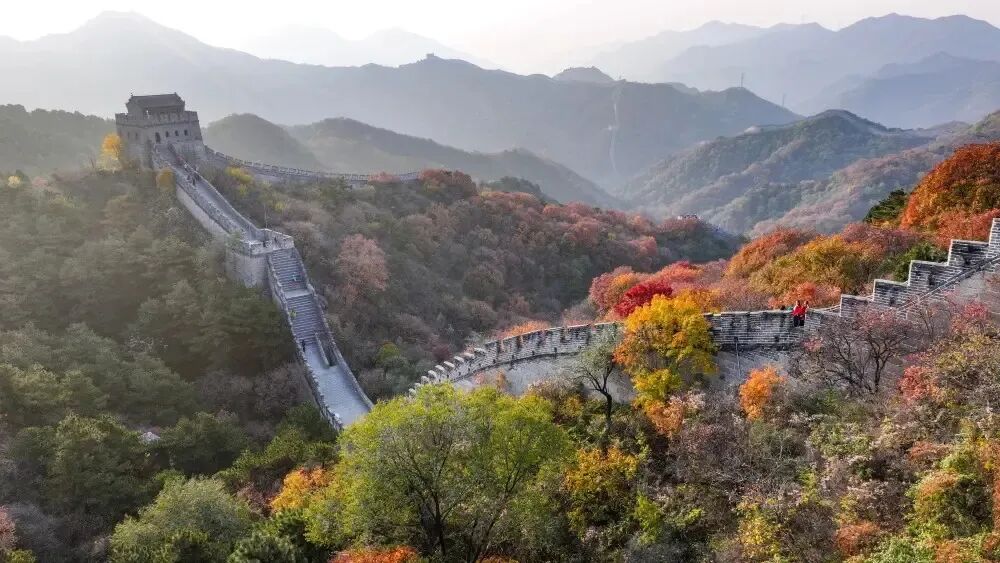 ▲秋日早晨拍摄的八达岭长城(无人机照片,2024年10月29日摄)。新华社记者 陈晔华 摄