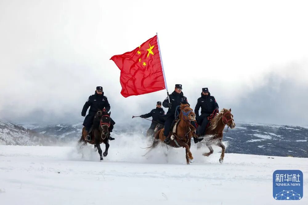 ▲新疆阿勒泰边境管理支队喀纳斯边境派出所巡护队对山口要道进行巡逻踏查。 新华社发 王友波 摄