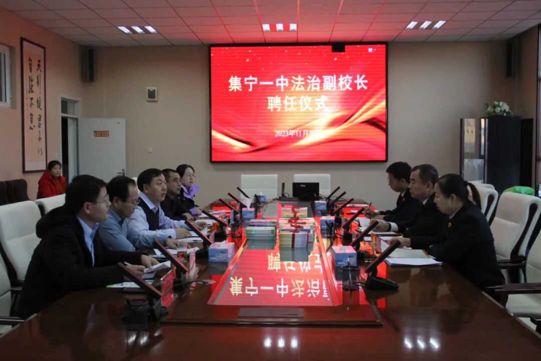为切实加强青少年法治教育,从源头预防和减少未成年人违法犯罪的发生,进一步推动乌兰察布市检察机关法治副校长工作高质量发展,11月30日下午,乌兰察布市人民检察院党组书记郭文秀受邀参加集宁一中法治副校长聘任仪式,乌兰察布市人民检察院“晨曦”未检团队一同前往,参观了集宁一中霸王河校园建设,查看了学生宿舍,对“一号检察建议”落实情况进行监督检查。并在集宁一中以“法润校园,守“未”成长”为主题为全校师生讲授法治宣讲教育课。集宁一中校长兰荣彦、副校长胡富强及学校相关部门负责人参加此次聘任仪式。