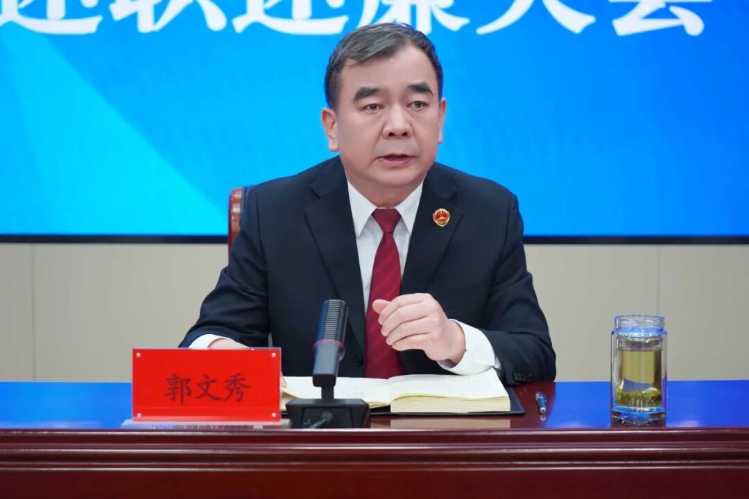 党组书记、检察长郭文秀代表院党组进行了总结讲话。郭文秀检察长肯定了两级院一年来取得的成绩和进步,对2026年全市检察工作提出新期许。一是围绕中心服务大局。全市检察机关要继续坚持以习近平新时代中国特色社会主义思想为指导,认真学习贯彻党的二十大精神和党的二十届四中全会精神及习近平总书记在内蒙古考察期间的重要指示重要讲话精神,紧紧围绕自治区经济工作会议提出的“1571”工作部署和市委相关工作要求,全面开展工作。二是瞄准一流,逢旗必夺,勇攀高峰。在工作上要对标全区前列的先进院,积极争取荣誉,努力在高原上起高峰,保持住现有的工作劲头。三是继续坚持常规工作抓规范,重点工作求突破,特色工作创品牌。今年要继续强化检察管理,深化规范化建设年活动,各基层院、各条线要根据实际情况抓早、抓实,摒弃“等靠要”思想。四是处理好办案数量与办案质量的关系。在办案数量保持一定规模,确保监督力度的前提下,把工作精力放在抓办案质量与效率上来,把“高质效办好每一个案件”做到实处五是继续保持积极进取的劲头,不断推动乌兰察布检察工作提档升级。六是继续抓好特色亮点创建工作,做精做优典型案例培育工作、优秀法律文书评选工作等。七是继续落实完善学习先进院、跟上呼包鄂工作机制,学习先进院经验做法,一并发展进步。要持续深化京蒙检察协作,推动与北京地区检察院同堂培训,远程指导等。八是领导干部要时刻关注党风廉政、队伍建设、案件情况、检察管理等各项工作,保持思想不松懈,工作不松劲,配合各级党委圆满完成工作。