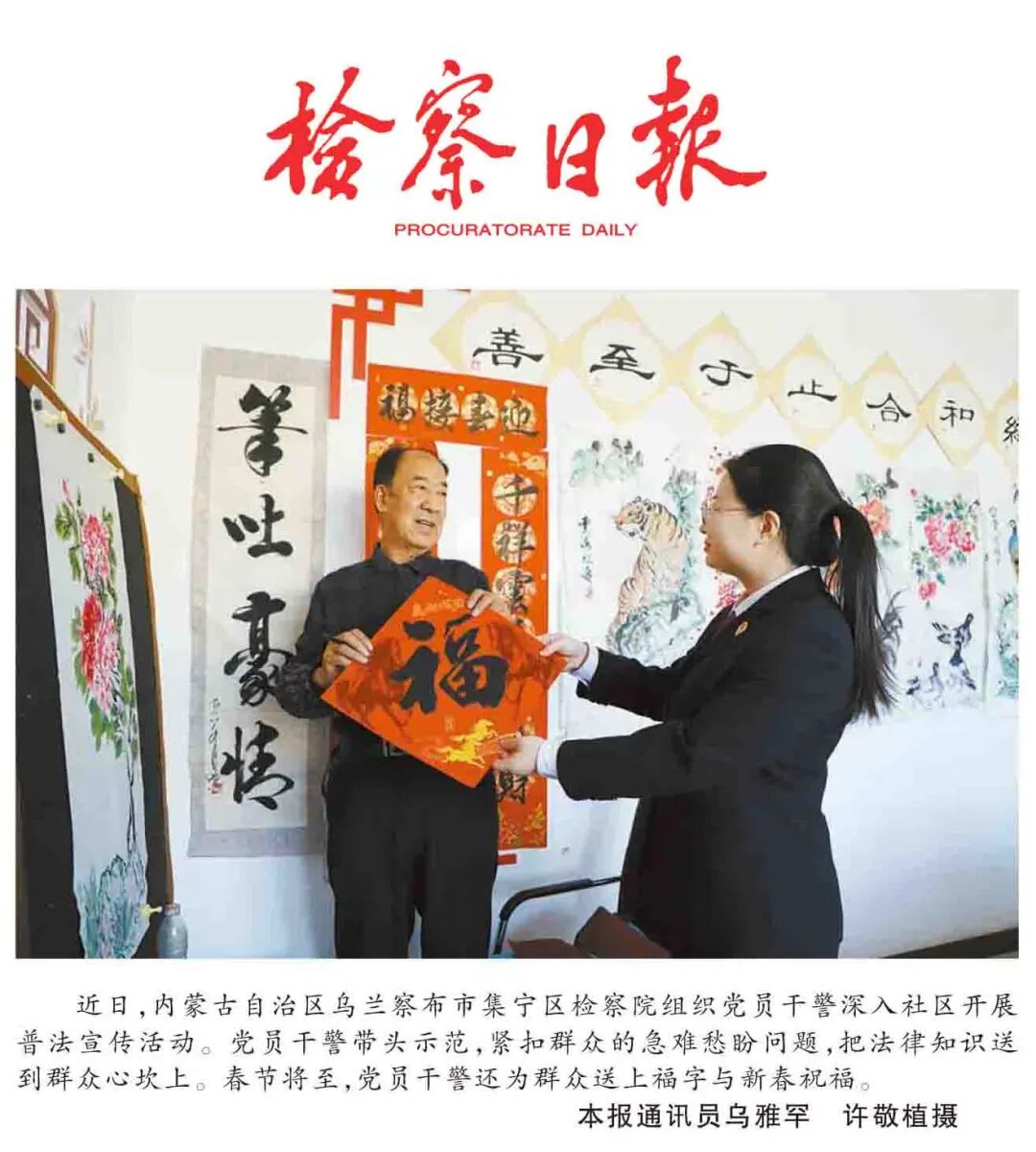 党员检察人员带头示范,紧扣群众的急难愁盼问题,把法律知识送到群众心坎上。春节将至,还为群众送上福字与新春祝福。