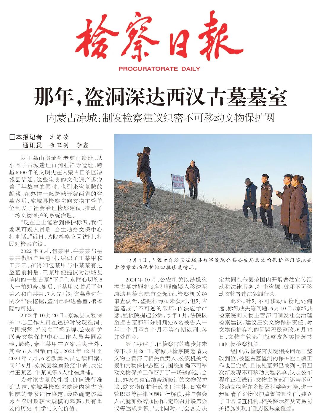 2024年10月,公安机关以涉嫌盗掘古墓葬罪将6名犯罪嫌疑人移送至凉城县检察院审查起诉。检察机关经审查认为,盗掘行为虽未获利,但对古墓造成了不可逆的破坏,依法应予严惩。经该院提起公诉,今年1月,法院以盗掘古墓葬罪分别判处6名被告人一年二个月至九个月不等有期徒刑,各并处罚金。
